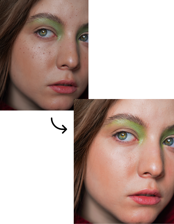肌の明るさ補正、しみ・そばかすの消去を復習。