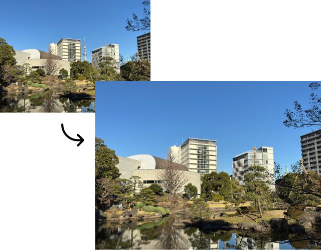 東京両国・刀剣博物館内にある庭園から見えるスカイ ツリーを消しました。